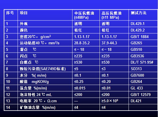 (4)運(yùn)行中抗燃油標(biāo)準(zhǔn)
